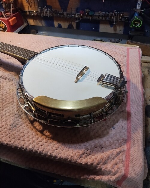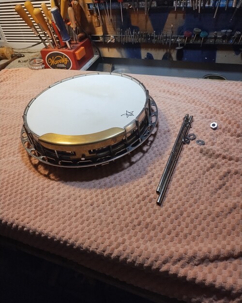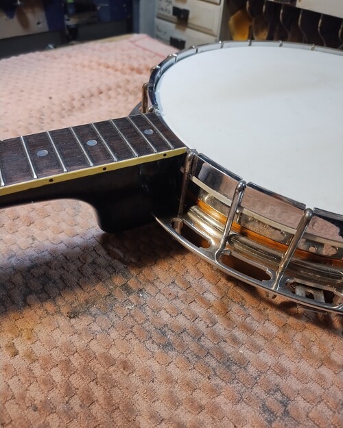 It was never on a banjo, cut for one piece Gibson flange.